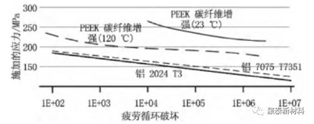 圖三(san)、PEEK材料咊(he)鋁(lv)的拉伸疲勞性能對比示意圖